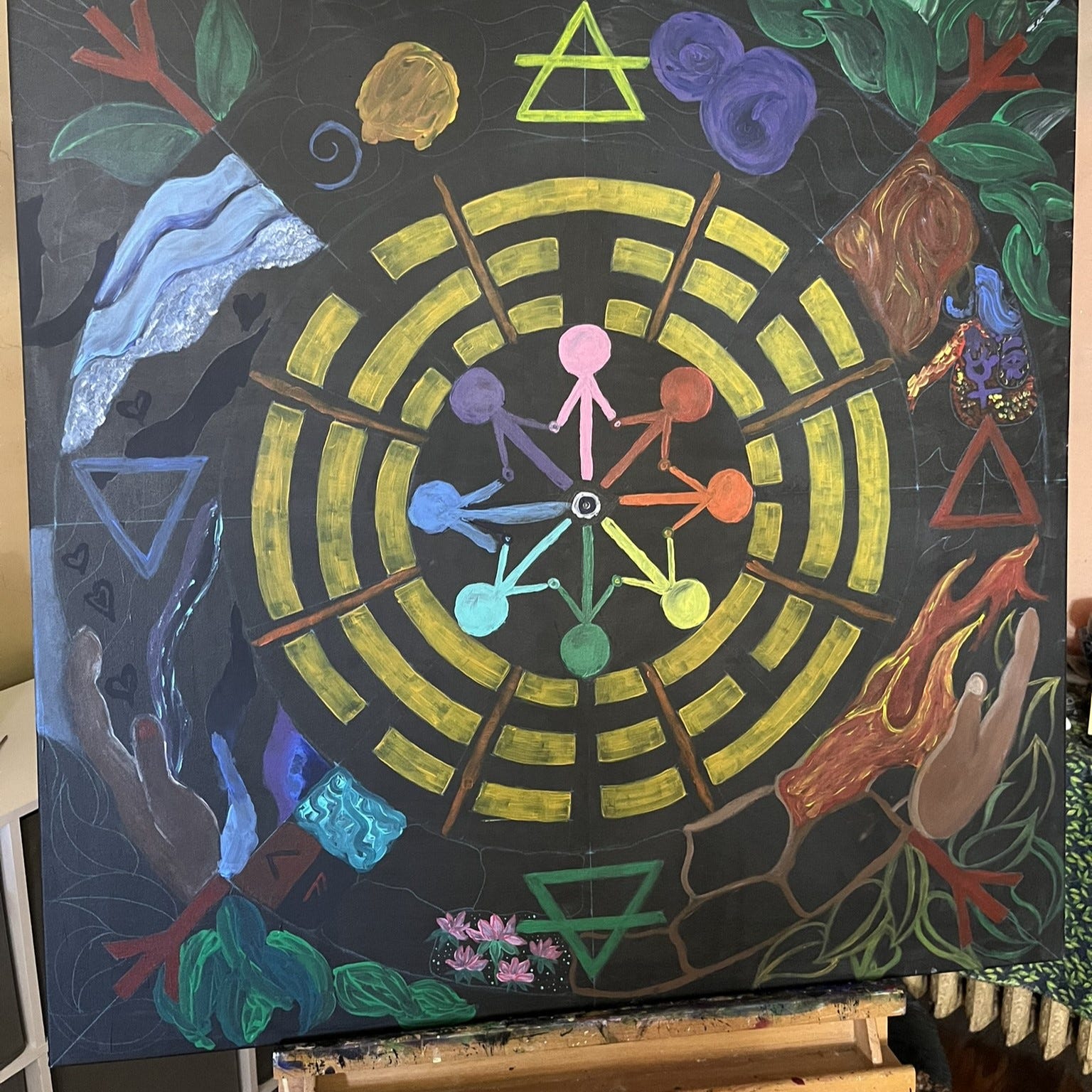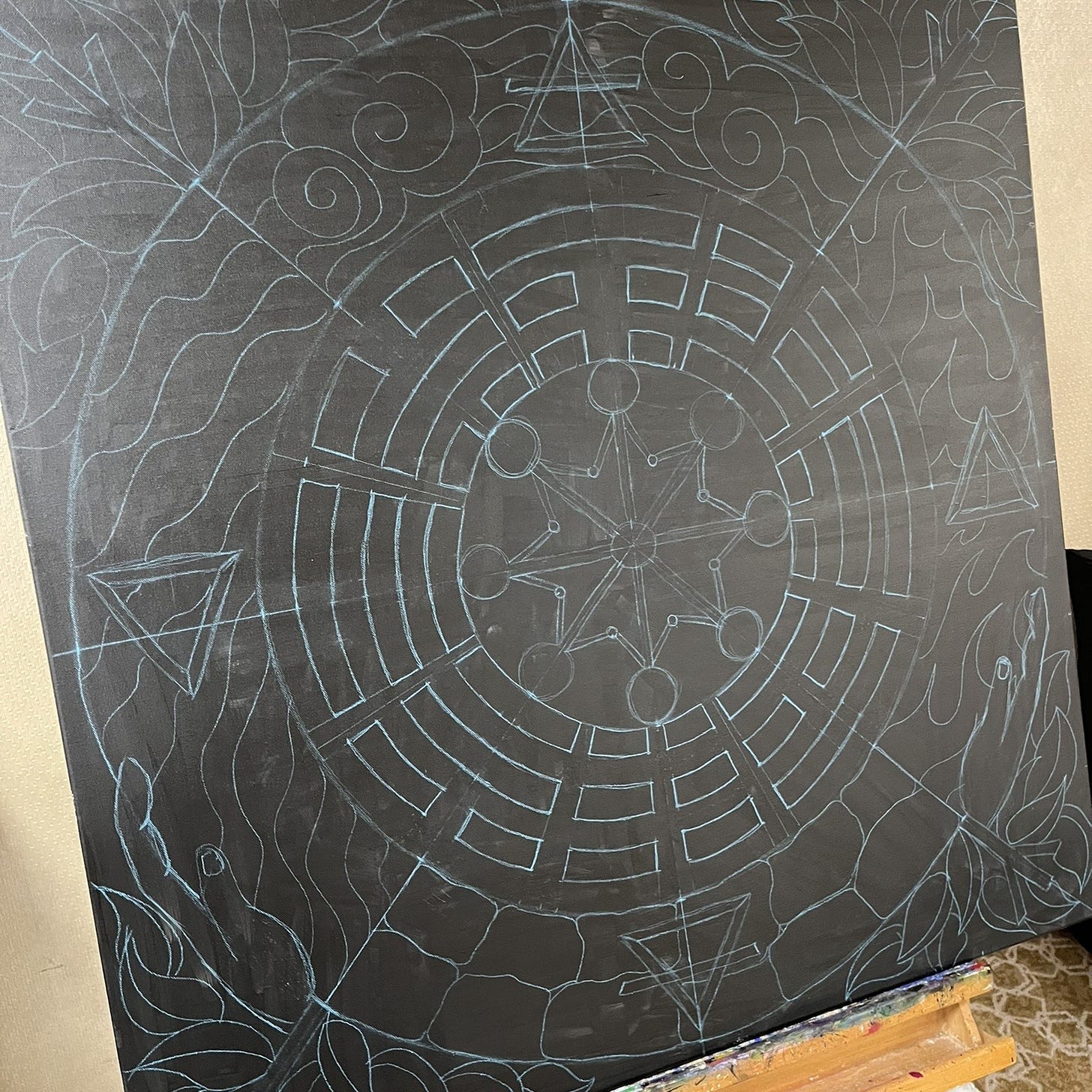 Creating art is an act of magic. I am part of a community that practices magic on the regular, so I wanted to find ways to use visual expression as a tool to create magic for the community, magic that would bring people together in time and would continue to live through the artifact created — a mandala that would act as a sigil and a talisman to radiate out the intention and energy of the original working and a magnet to attract those energies to support the community.